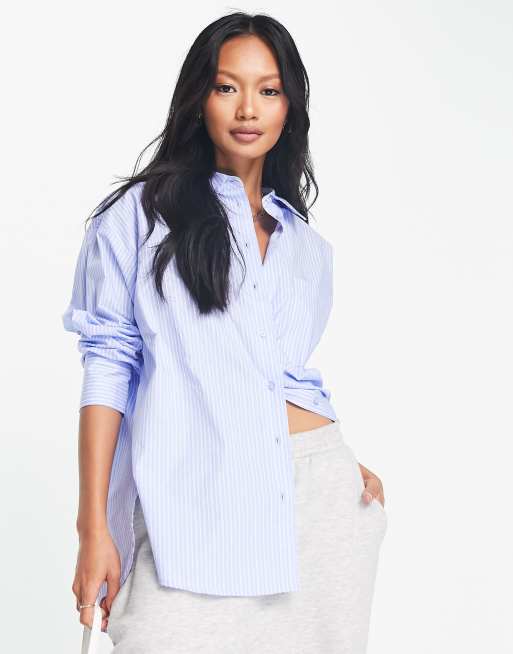 Mango - Blåstribet oversized skjorte med lommedetalje