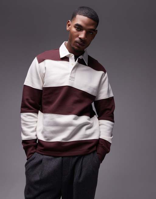Mango - Bordeaux og hvid polotrøje med striber i rugby-stil