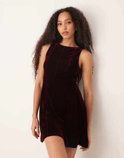Mango - Bordeaux shift-minikjole i velour