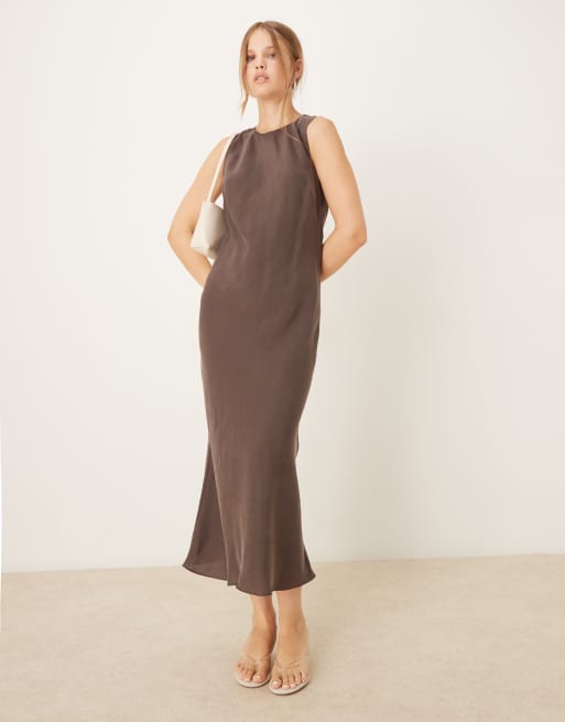 Mango - Brun ærmeløs midikjole