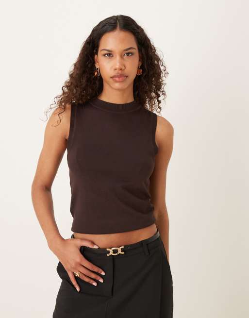 Mango - Brun ærmeløs top med høj hals i fin strik