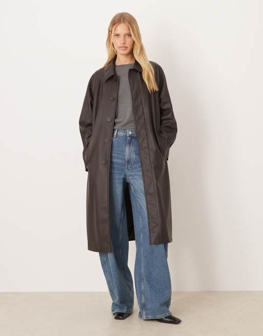 Mango - Brun trenchcoat i imiteret læder
