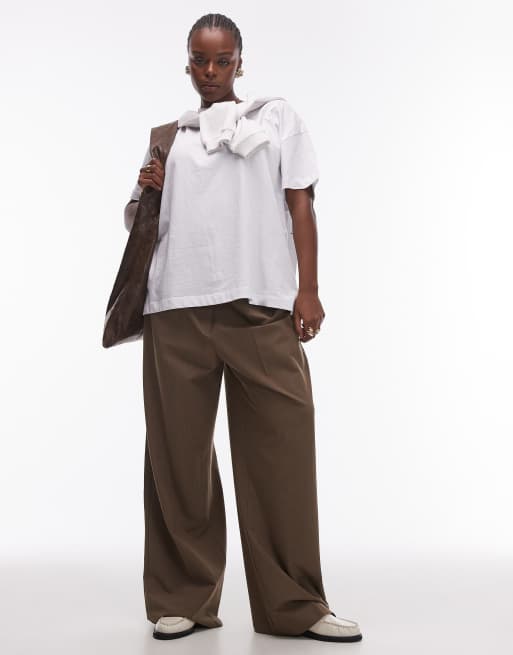 Mango - Brune buede bukser med elastisk bindetalje i afslappet pasform
