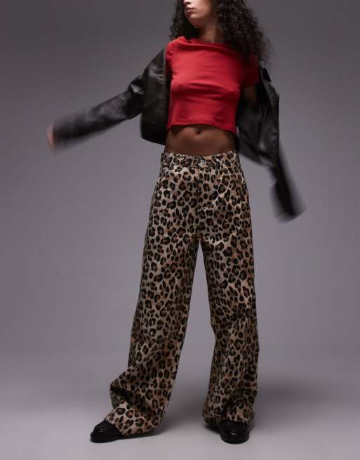 Mango - Brune og oversized jeans med lige ben og leopardprint