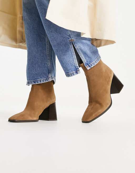 Mango - Brune støvler med hæl i ruskind
