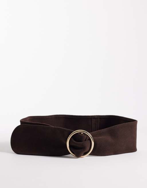 Mango - Brunt bredt bælte i ruskind med guldfarvet ringdetalje