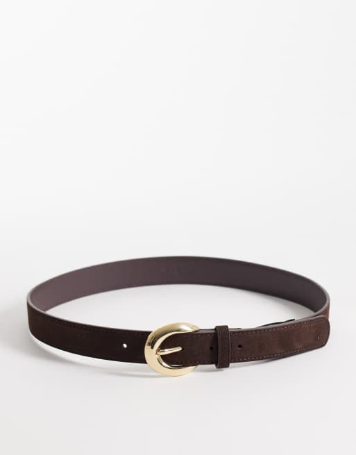 Mango - Brunt klassisk bælte i 100% ruskind med guldfarvet metaldetalje