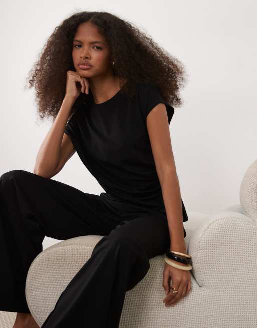Mango - Candelo - Sort top med afkortede ærmer og indsyet talje - Del af sæt
