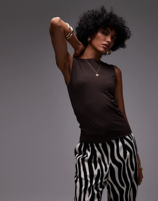 Mango - Chokoladebrun og ærmeløs top i polyamid