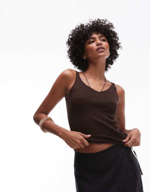 Mango - Chokoladebrun strikket top med tynde stropper
