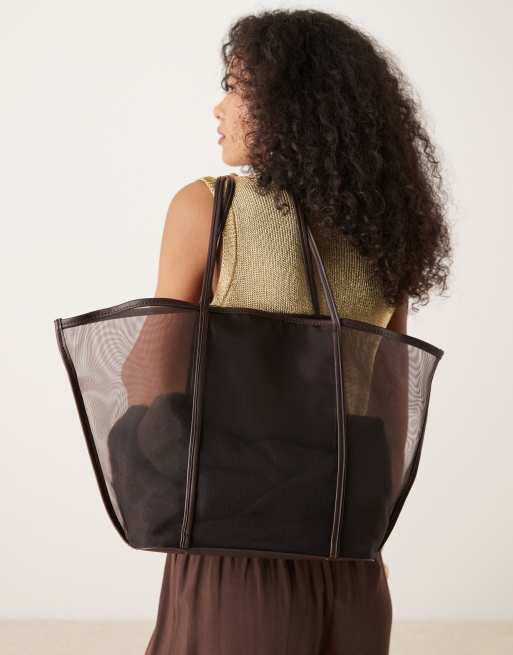 Mango - Chokoladebrun tote-taske i mesh