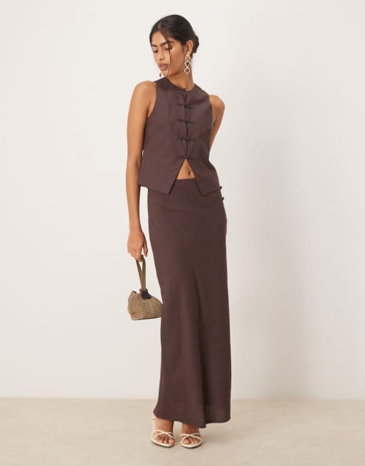 Mango - Chokoladebrunt sæt med skjorte og habitvest i hørblanding