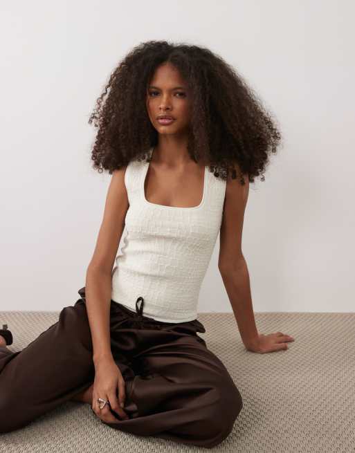 Mango - Cremehvid ærmeløs top med tekstur og firkantet hals