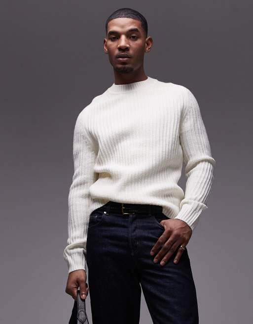 Mango - Ecrufarvet strikket trøje med rund hals