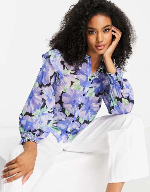 Mango - Gennemsigtig bluse med knapper i blomstermønster