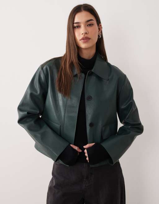Mango - Grøn jakke i imiteret læder