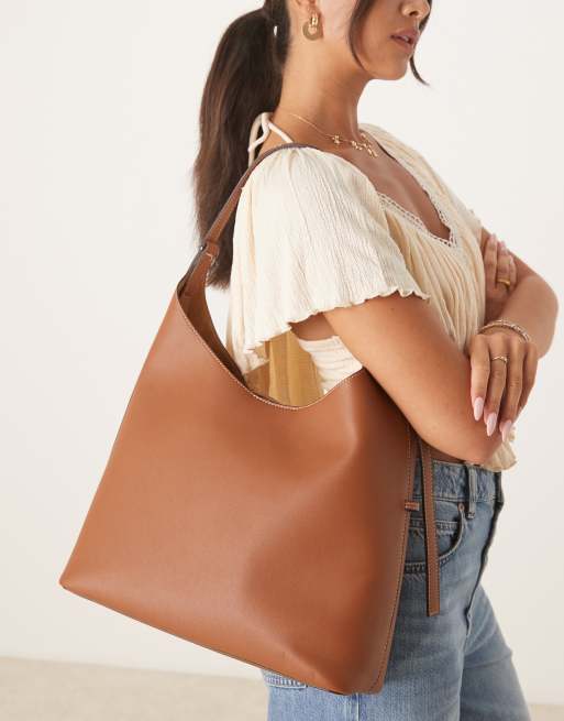 Mango - Gyldenbrun stor skuldertaske med justerbar rem