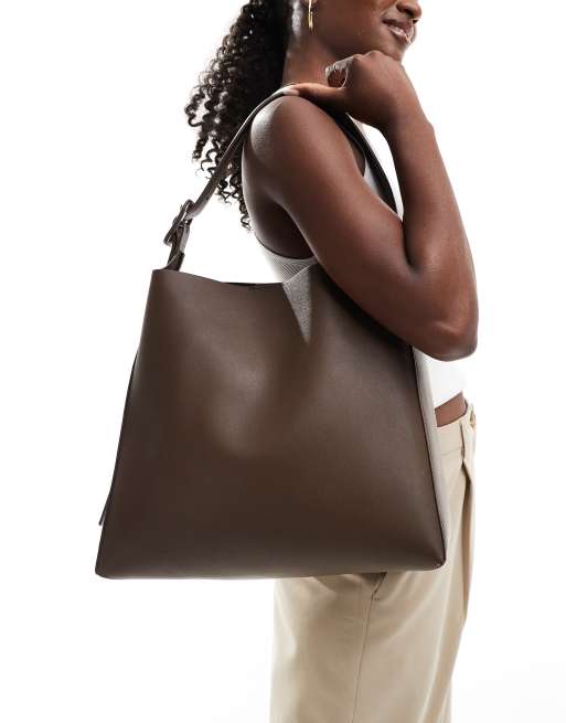 Mango - Håndtaske med justerbar strop i mørkebrun