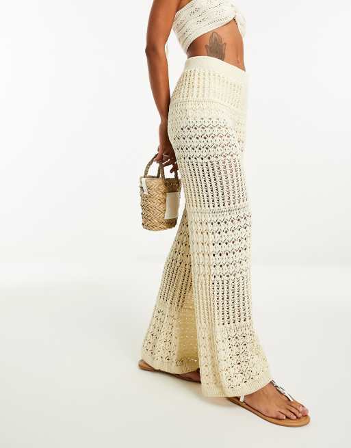 Mango - Hæklede strandbukser med vide ben i lys beige
