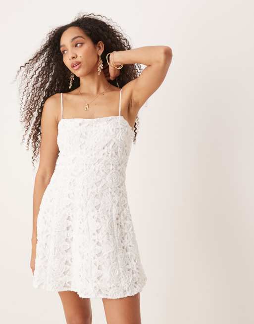 Mango - Hvid minikjole med blomsterapplikationer i bomuld