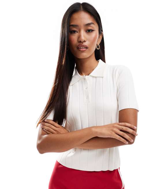 Mango - Hvid polotop med ribstrikkede detaljer