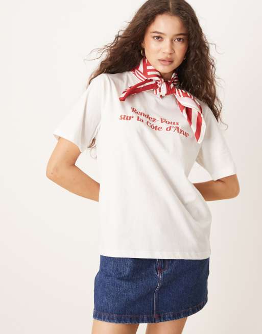 Mango - Hvid T-shirt med 'Rendez-Vous'-print
