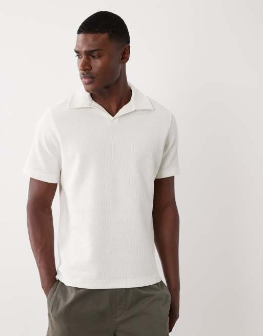 Mango - Hvid T-shirt med reverskrave og tekstur i bomuldsrig strik