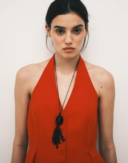 Mango - Iguana - Rød peplumtop med halterneck - Del af sæt