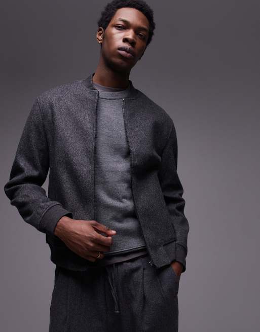 Mango - Koksgrå bomber-jakke i uldblandingsmateriale