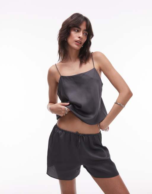 Mango - Koksgrå pyjamas-camisol i satin - Del af sæt