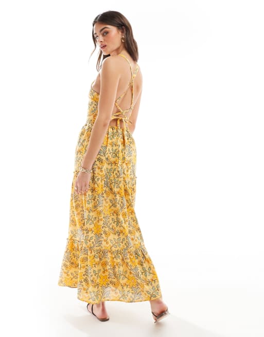 Mango - Lagdelt midikjole med blomstermønster i gul