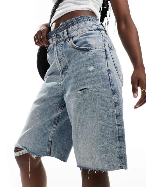 Mango - Lange-denimshorts med rå kanter i lyseblå