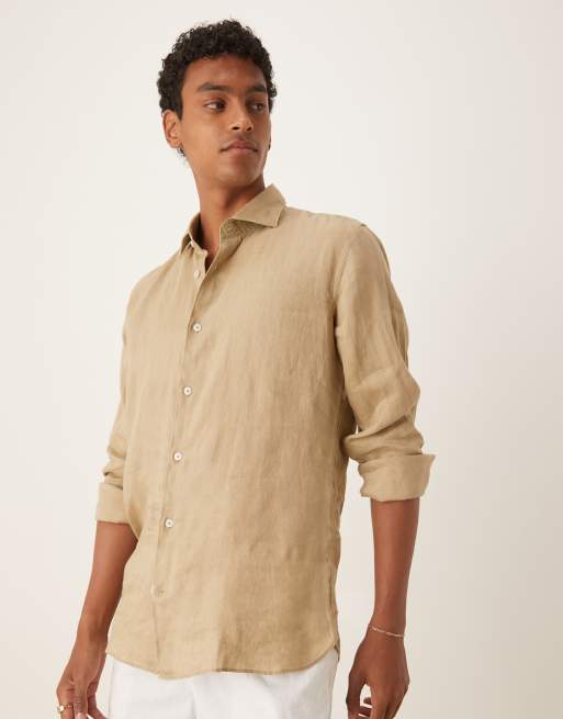 Mango - Lysbeige skjorte med lange ærmer i hørblanding