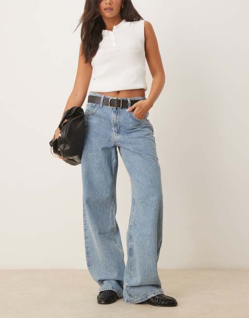 Mango - Lyseblå og lavtajede samt baggy jeans i bomuld med tekstur