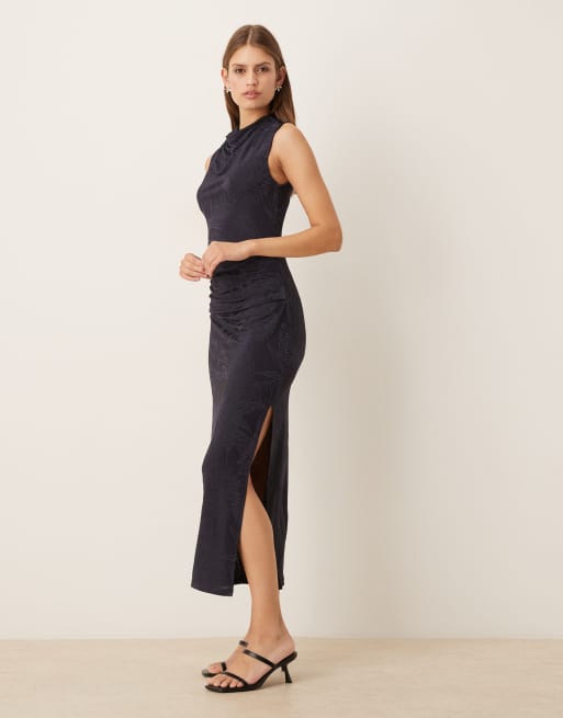 Mango - Marineblå ærmeløs midikjole med høj hals