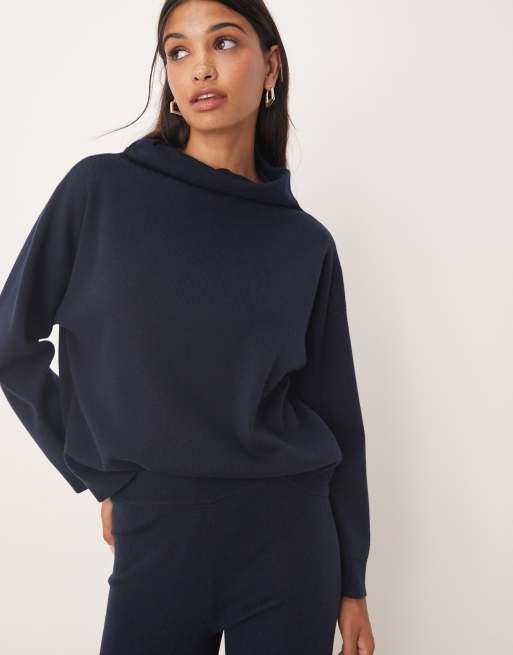 Mango - Marineblå trøje med høj hals i blød strik - Del af sæt