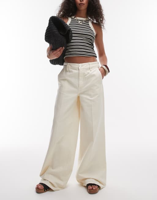 Mango - Maya - Ecrufarvede afslappede jeans med lige ben