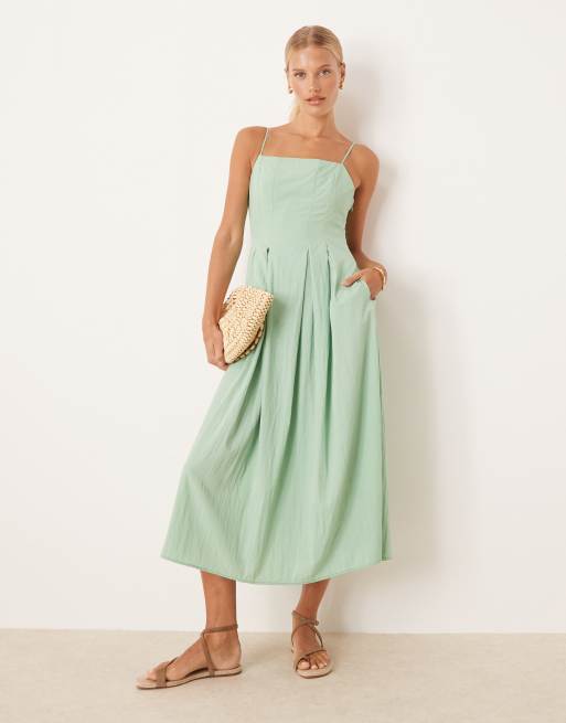 Mango - Mintgrøn midikjole med rynket livstykke