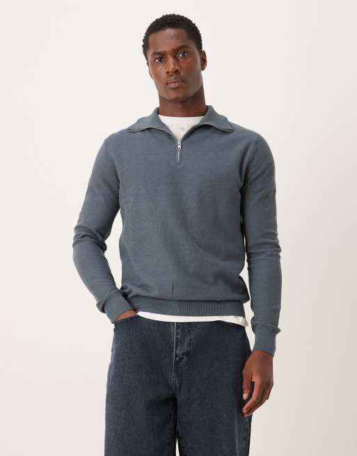Mango - Mørkeblå striktrøje med lynlås i halsen