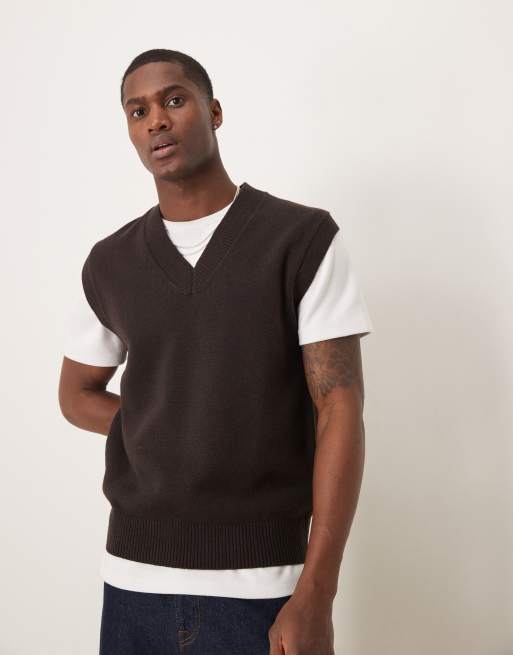 Mango - Mørkebrun sweatervest med V-hals