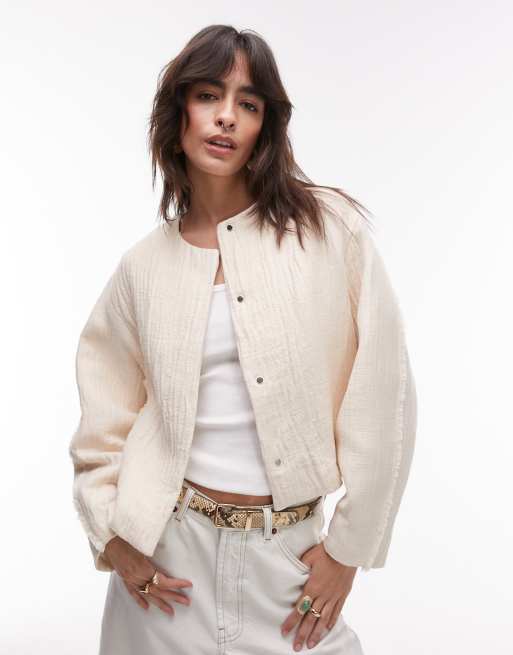 Mango - Offwhite jakke i bomuld med struktur og sænkede skuldre