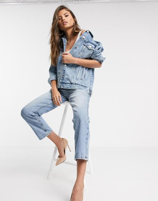 Mango - Oversized denim-jakke i mid blue