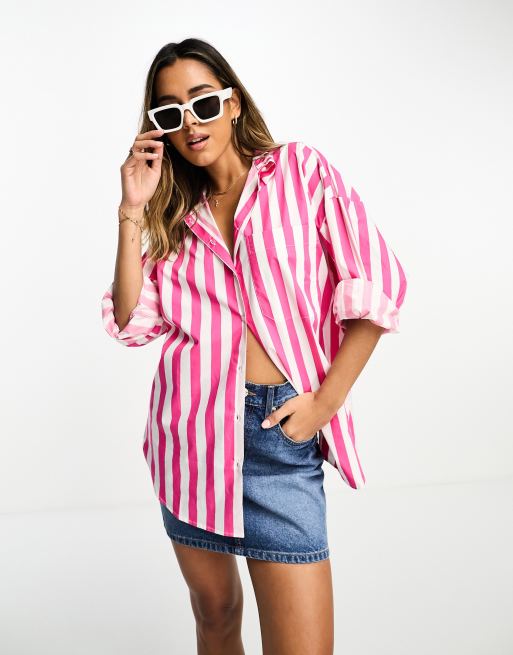 Mango - Oversized skjorte med lyserøde/hvide striber