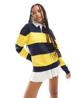 Mango - Poloskjorte i pastelgul/marineblå