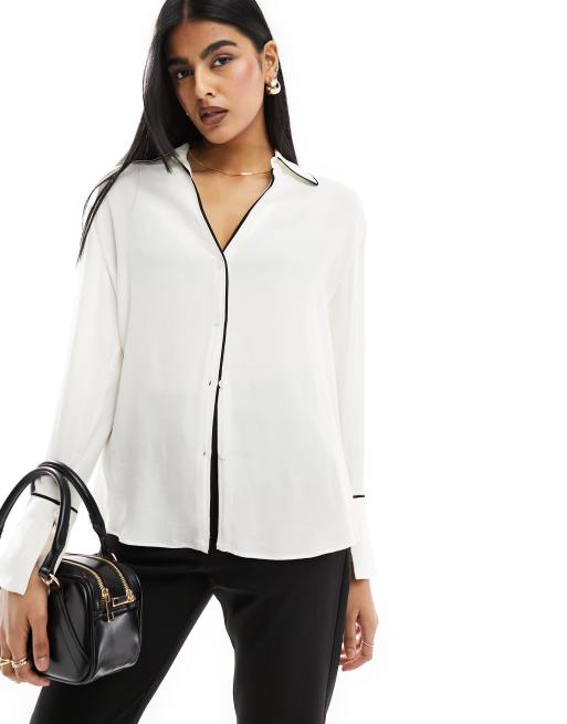 Mango - Råhvid skjorte med kontrastkanter - Del af sæt