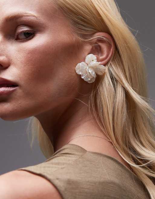 Mango - Ørestikkere med hvidt blomsterdesign med perlemorsfinish