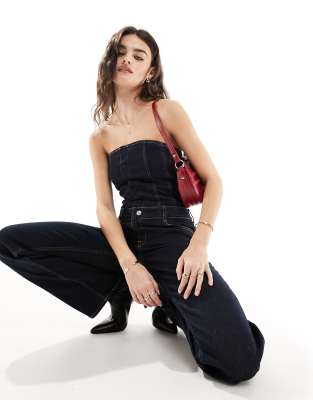 Mango - Skræddersyede og mørkeblåt bandeau-jumpsuit i denim