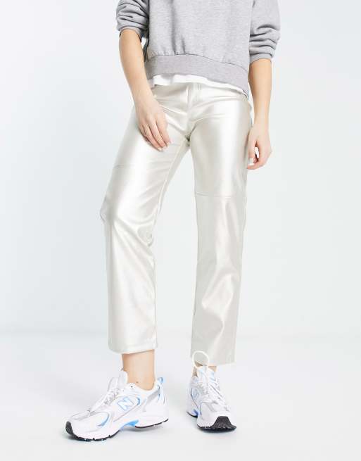 Mango - Sølvfarvede lige bukser i imiteret læder