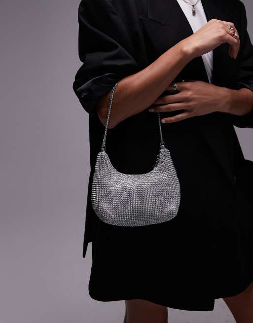 Mango - Sølvfarvet skuldertaske med ringbrynjedesign