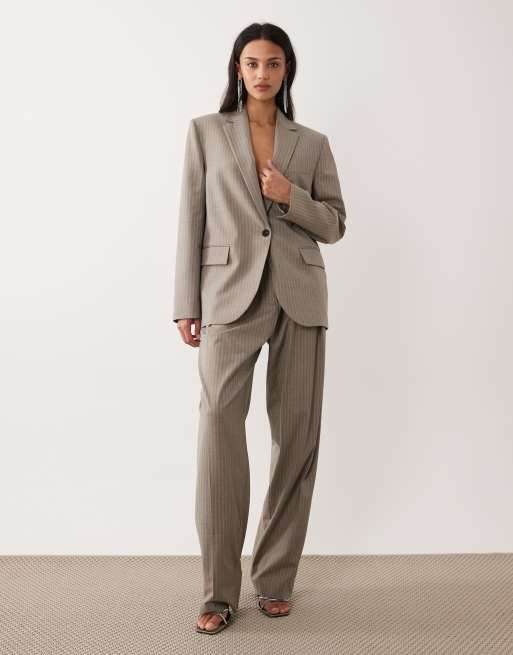Mango - Sol - Beige og blåt stribet baggy sæt med skræddersyet blazer og bukser